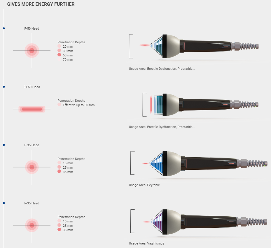 انواع سریهای هندپیس (Handpiece head) دستگاه شاک ویو فوکس اینسلر (ED-ESWT):